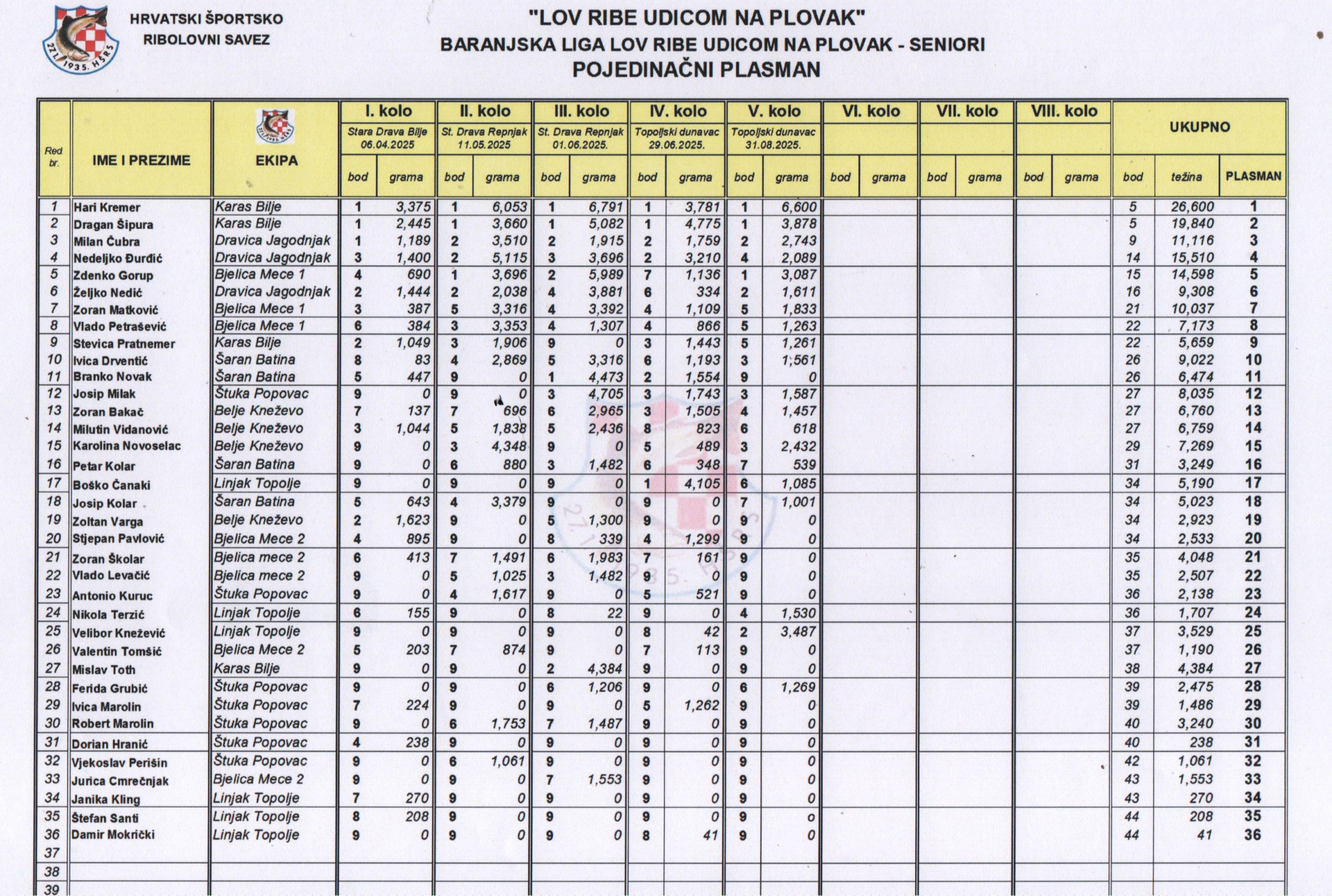 lov ribe udicom na plovak - 5. KOLO