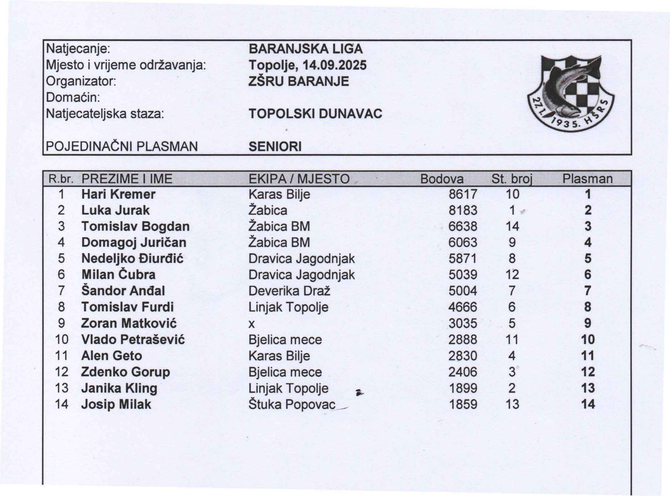 POJEDINAČNI KUP ZŠRU BARANJE ZA SENIORE I SENIORKE
